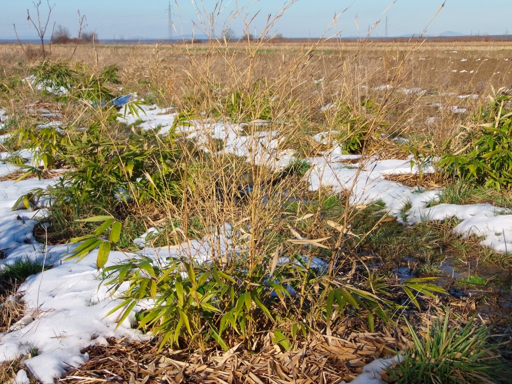 After the snow started melting I was able to see the extent and nature of the leaf damage much better. My conclusion it that the most of the leaf damage is due to cold wind that came from north and north-west on the days when it was snowing. Traces of the wind were visible in form of small snow drifts around bamboo. Those days we had -15 and -17°C || 5 and 1.4°F at night there was no wind and leafs that were exposed to those temperatures did not suffer any damage. Damage came few days earlier but low temperatures kept damaged leafs frozen. When sun came leaf were free of ice and they were able to curl into needles.